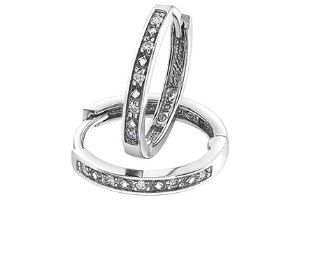 10K White Gold Huggies, 10 natural diamonds, .05 ct weight in diamonds