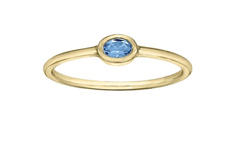 10K Yellow Gold Blue Topaz Bezel ring 5x3mm oval.