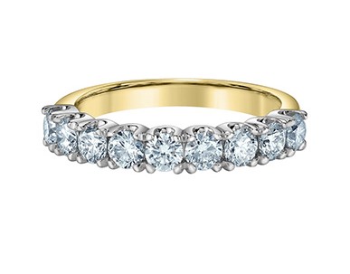 14KT Yellow and white gold ring set with lab grown diamonds 9LGD=1.00CT Clarity: VVS-VS Colour: D-F