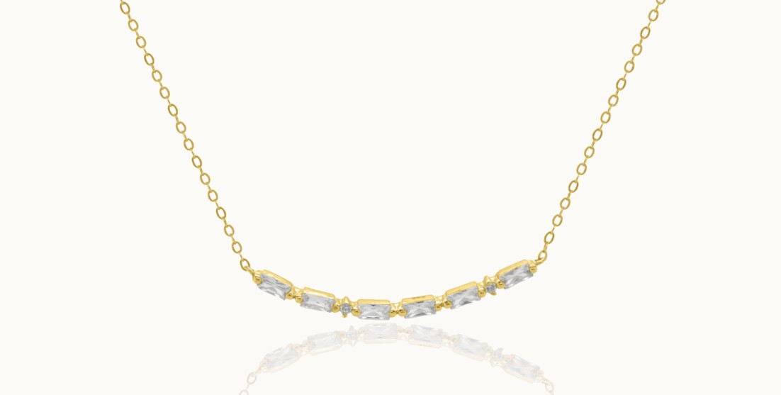Sterling silver gold vermeil necklace with cubic zirconias. 16″+2″