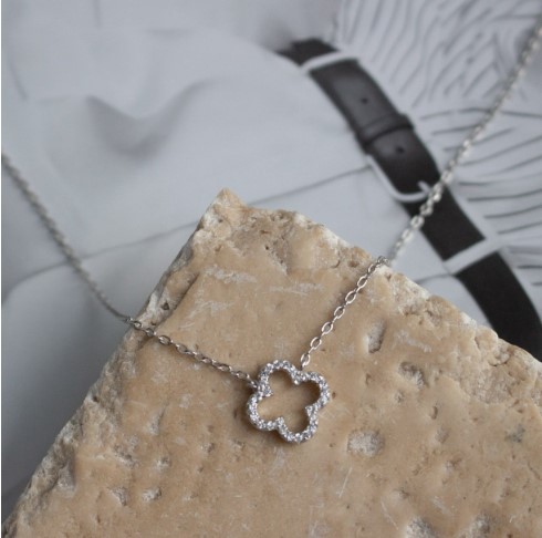 Sterling Silver CZ Pave Designer Clover Necklace 18 inches.