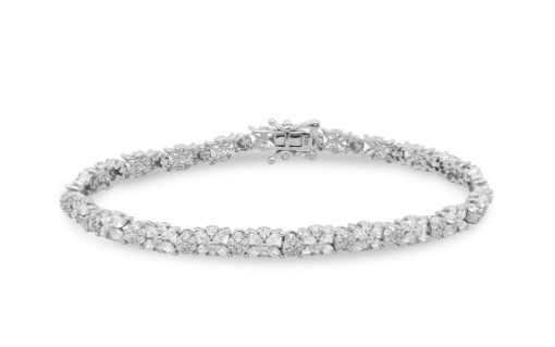 Sterling silver rhodium plated Cubic Zirconia floral design Tennis bracelet, 7 1/2″.